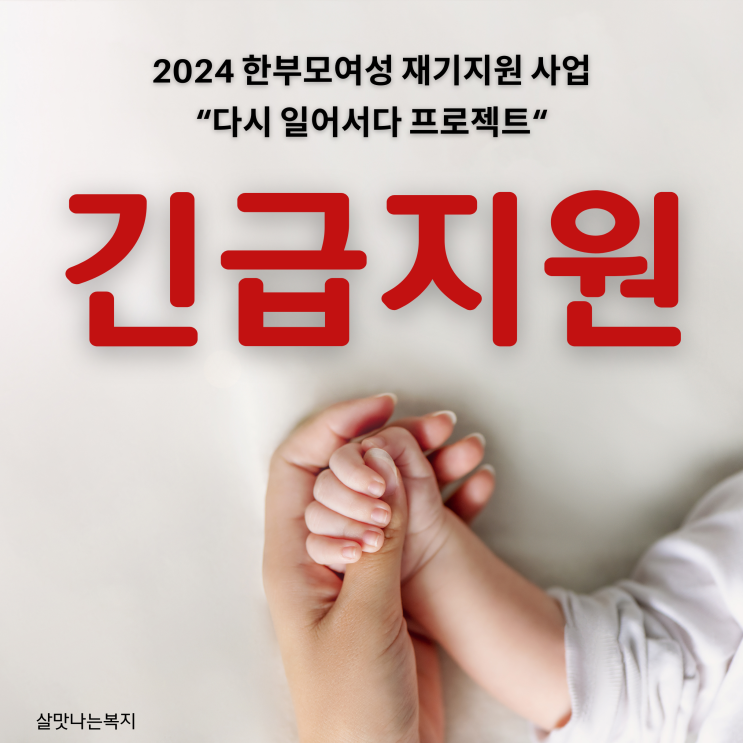 2024 한부모여성 긴급지원(다시 일어서다 프로젝트) 안녕하세요. 살맛나는복지입니다. 2024 한부모여성 재...