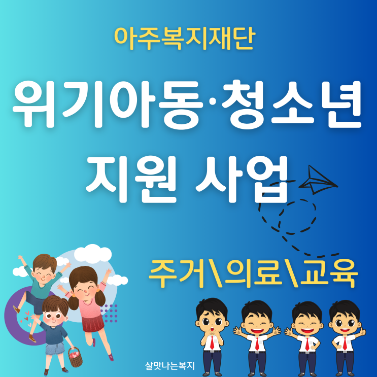 위기아동·청소년지원 사업(아주복지재단) 안녕하세요. 살맛나는복지입니다. 아주복지재단은 사회적 책임을 ...