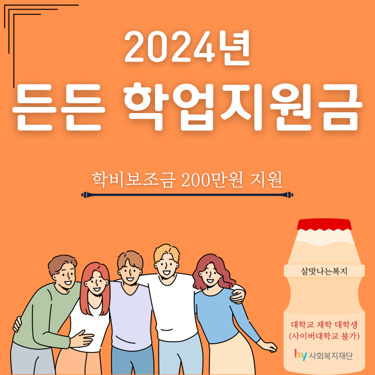 2024년 든든 학업지원금 안녕하세요. 살맛나는복지입니다. 1. 개요 hy사회복지재단은 사회 다양한 취약계층...