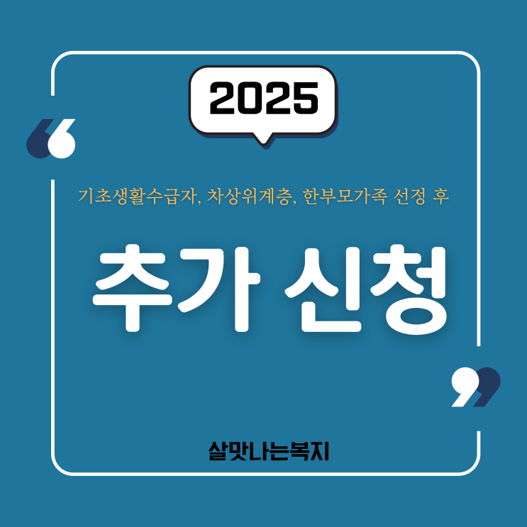 2025년 기초생활수급자, 차상위, 한부모가족 선정 이후 추가 신청