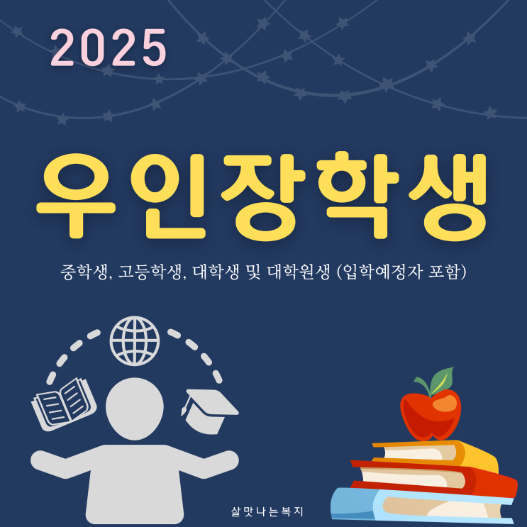 25년 우인장학생 모집(중학생, 고등학생, 대학생 및 대학원생) 안녕하세요. 살맛나는복지입니다. 재단법인 ...