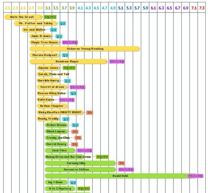 애플리스사 사이트에 직접 가셔서 보시면 단계별 설명을 더 자세히 보실 수 있어요. 렉사일 지수별 책...