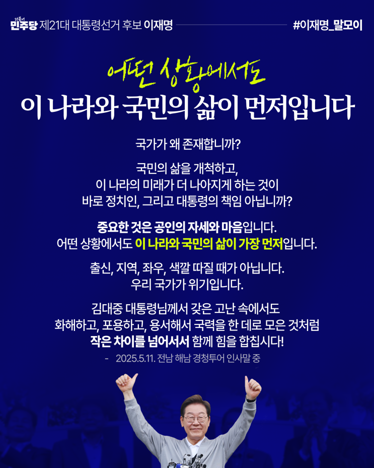 [#이재명의_말모이] 어떤 상황에서도 이 나라와 국민의 삶이 먼저입니다