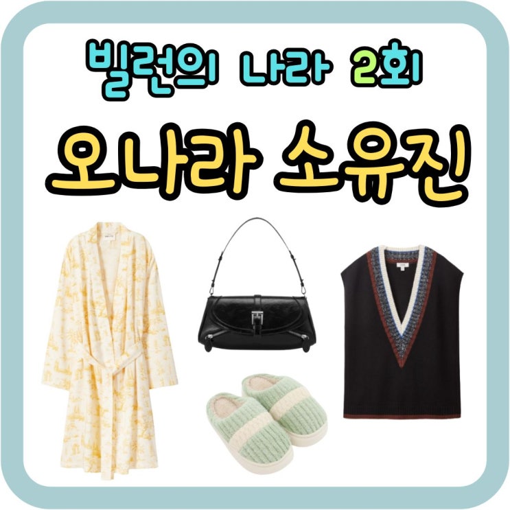 빌런의 나라 2회 오나라 로브 가운 소유진 조끼 베스트 슬리퍼 실내화 한성민 가방 옷 패션 브랜드 정보