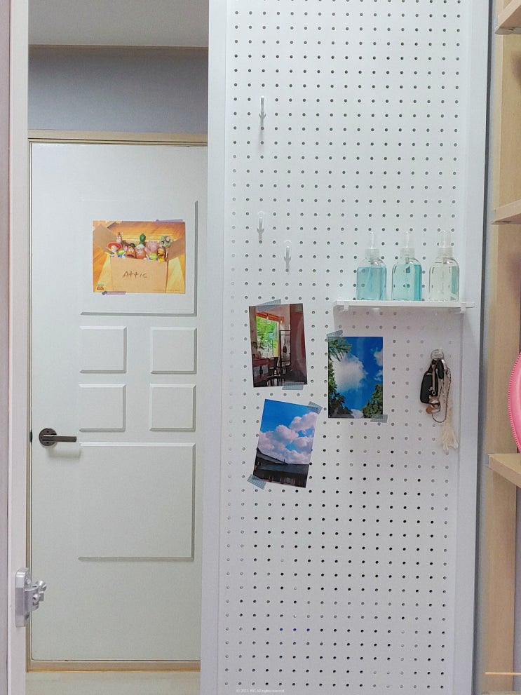 전부터 타공보드 달고 싶었는데 벽에 못박는걸 별로 안좋아해서 잊고 지내다가 지난해인가? 파티션 형태의 ...