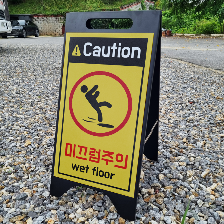 미끄럼주의 알림 A형 A자 철제 입간판 거치대 블랙 팻말 안내표지 중 단면 대량 구매 및 기타문의는 eden...
