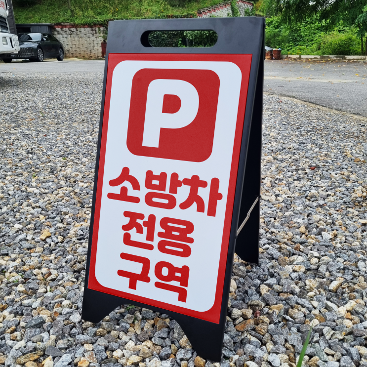 소방차 전용구역 A형 A자 철제 입간판 거치대 블랙 팻말 안내표지 중 단면 대량 구매 및 기타문의는 eden...