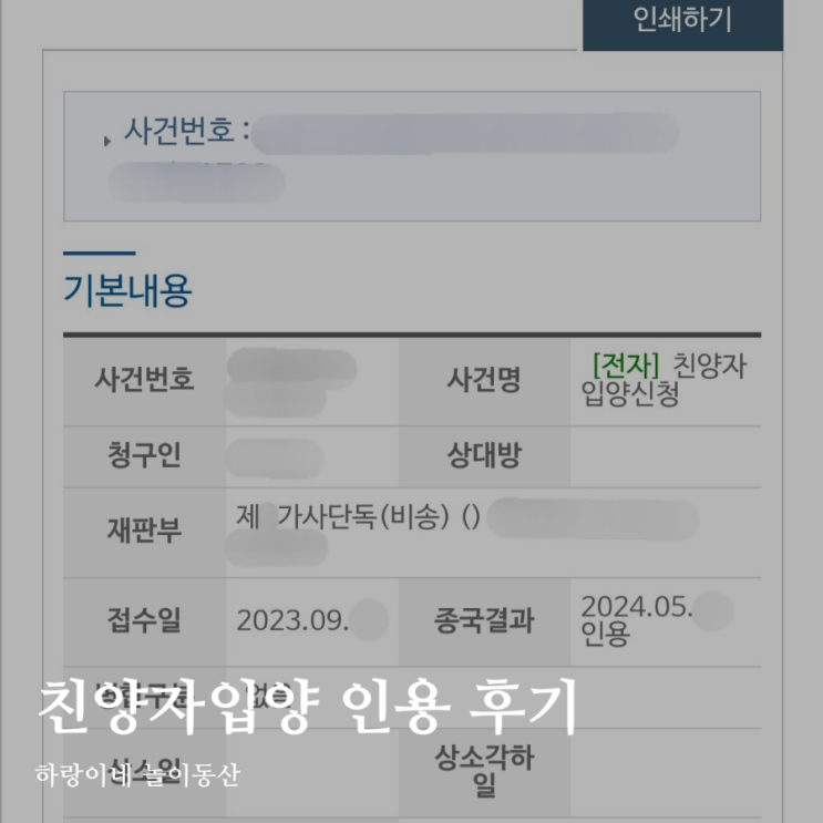 미성년자 입양 소요 기간 친양자 소송 인용 후기 2023년 9월에 시작해서 2024년 5월에 종결이 된 친양자입...