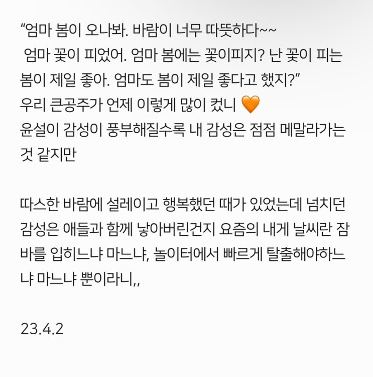 메모장에 있던 과거 기록. 예쁜말 많이 하던 우리 윤설이가 새록새록 생각남.
