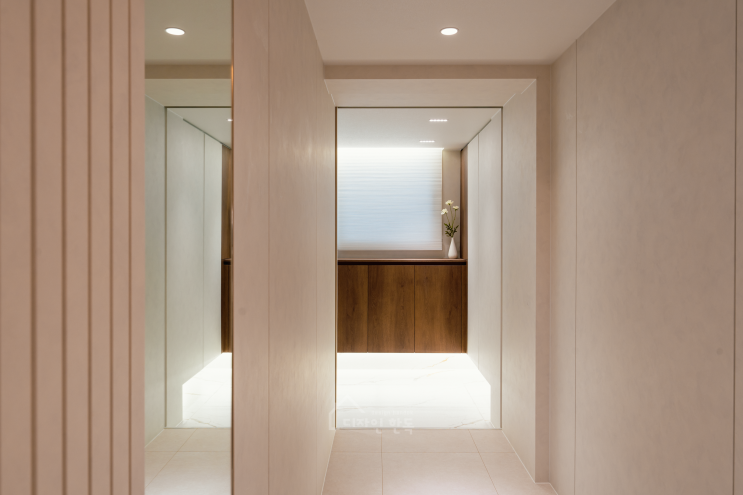-concept Wood & White -keyword 양평 현대6차 아파트 32평형 인테리어 무문선 히든도어 구정 블론테...