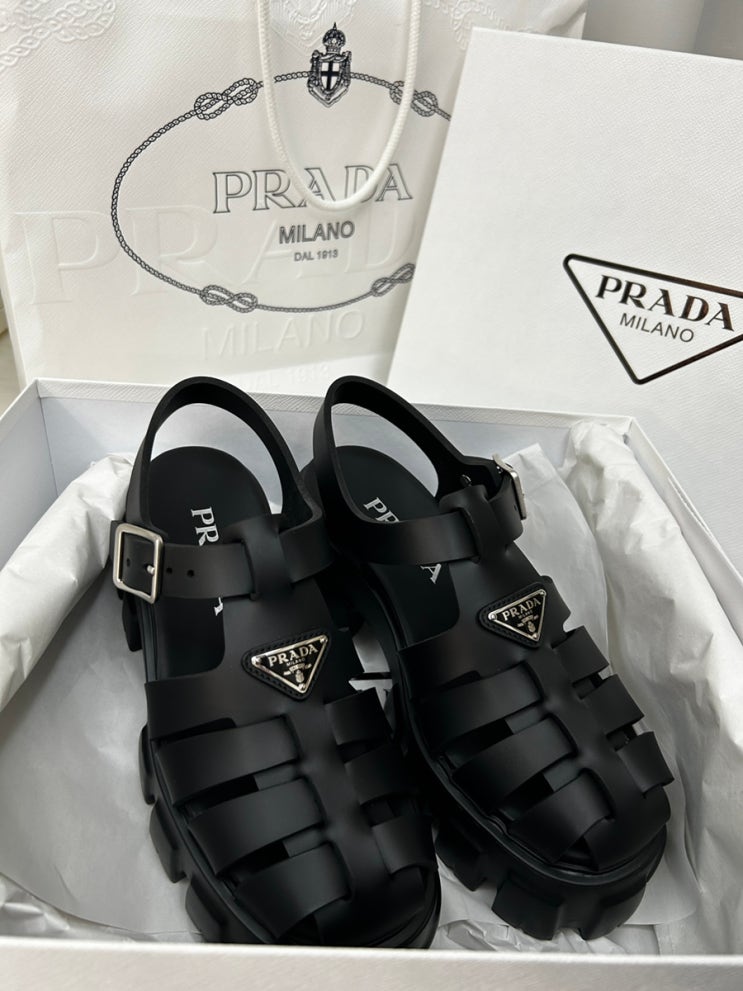 프라다 러버 샌들 블랙/ 여자 명품 샌들 추천