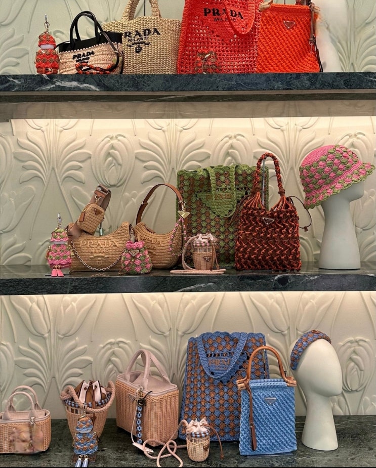 PRADA : 2025 여름 프라다 라피아백, 메리제인 플랫슈즈, 샌들 매장 둘러보기 입니다. 2025 올여름에...