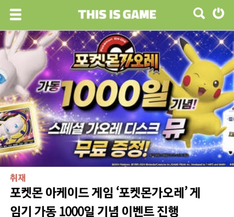 포켓몬 가오레 1000일 기념 증정 이벤트