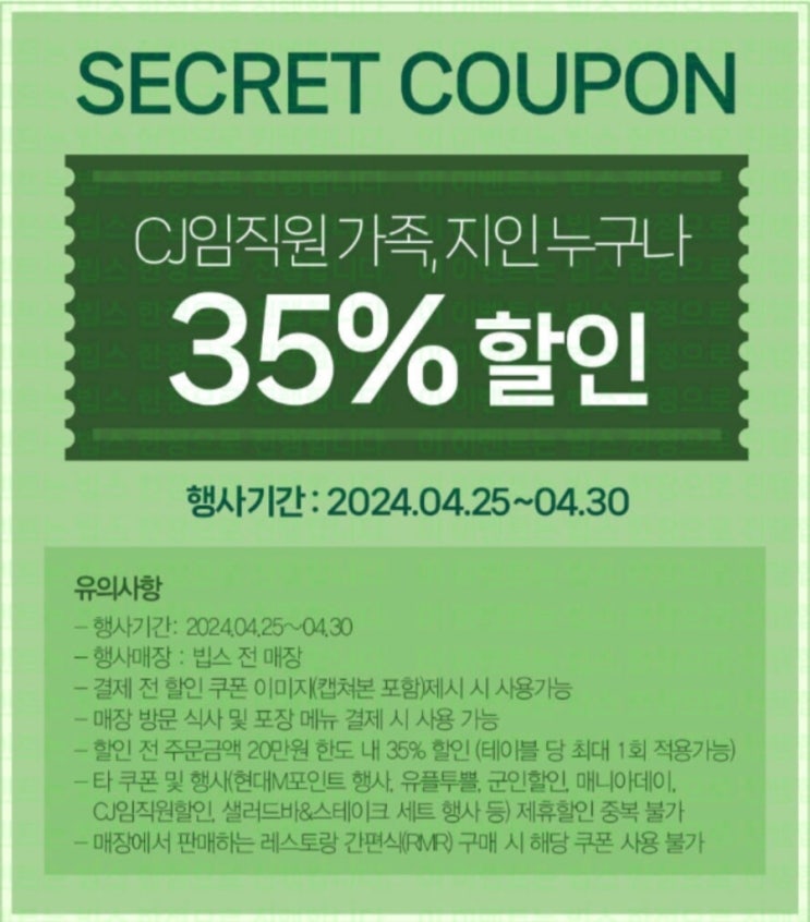 2024 빕스 임직원 35퍼 할인 쿠폰