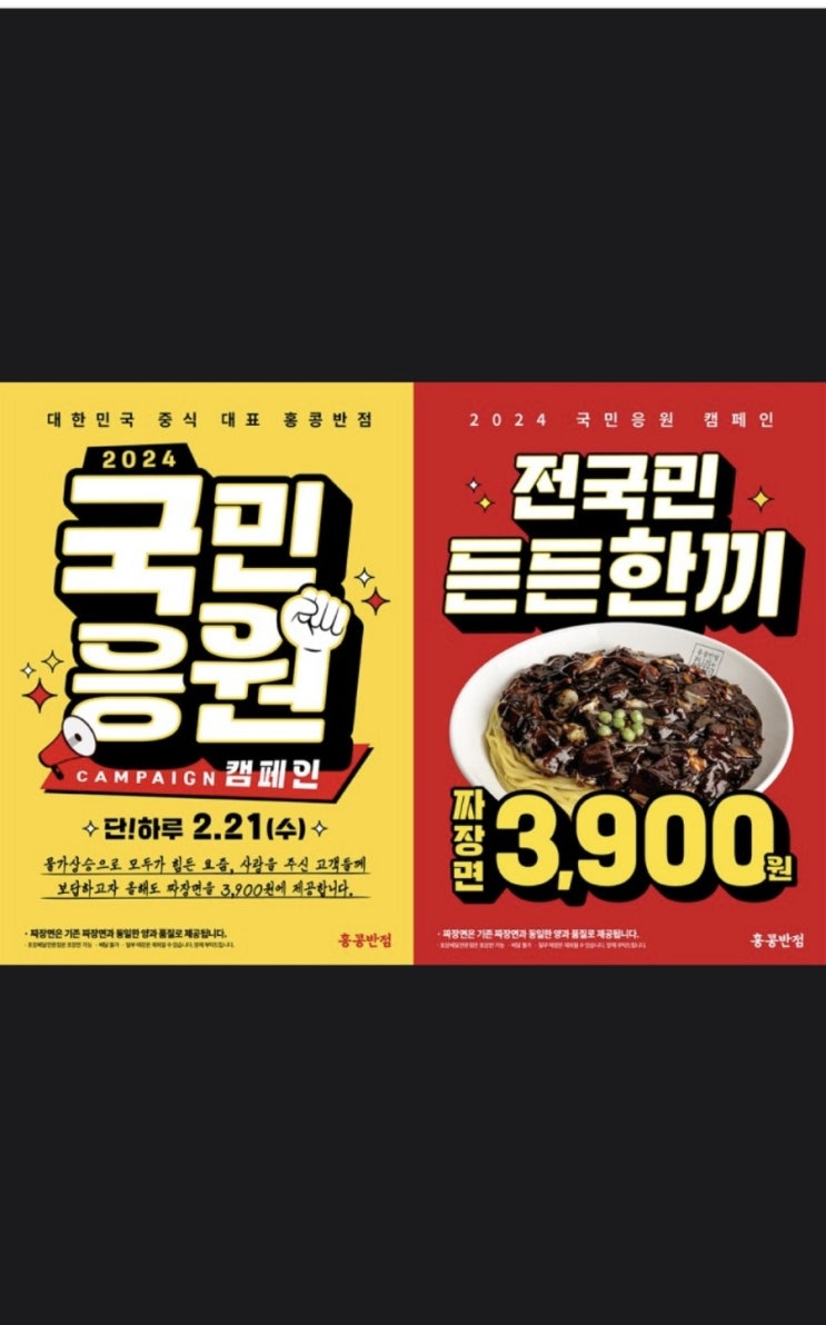 내일 홍콩반점 짜장 3900원