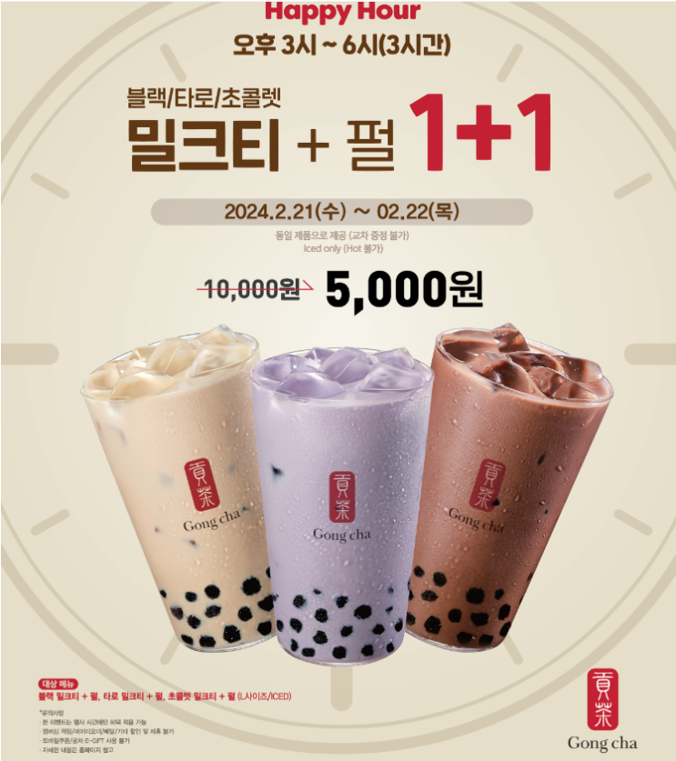 오늘 공차 1+1(오후3시~6시)