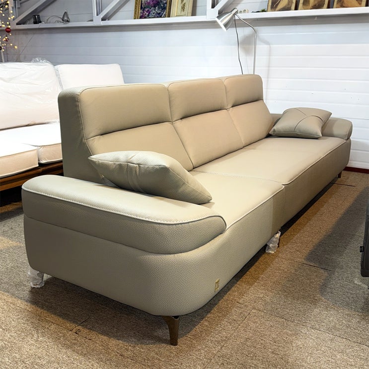 천연 통가죽 소파 4인 카키 베이지 -스크래치가구