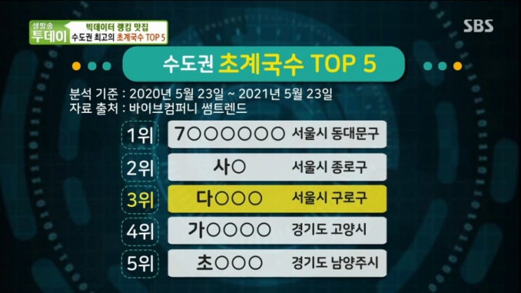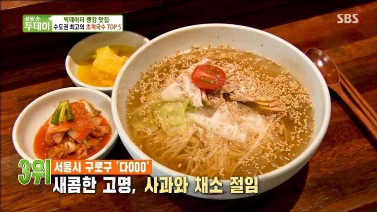 2021년 6월 18일 SBS 생방송투데이 2848회 빅데이터 랭킹 맛집 수도권 최고의 초계국수 Top5 편에서 쟁...