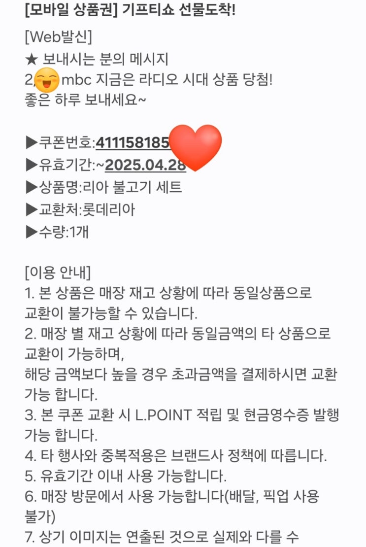 mbc 라디오에서 받은 롯데리아 햄버거 교환권! 사용하기