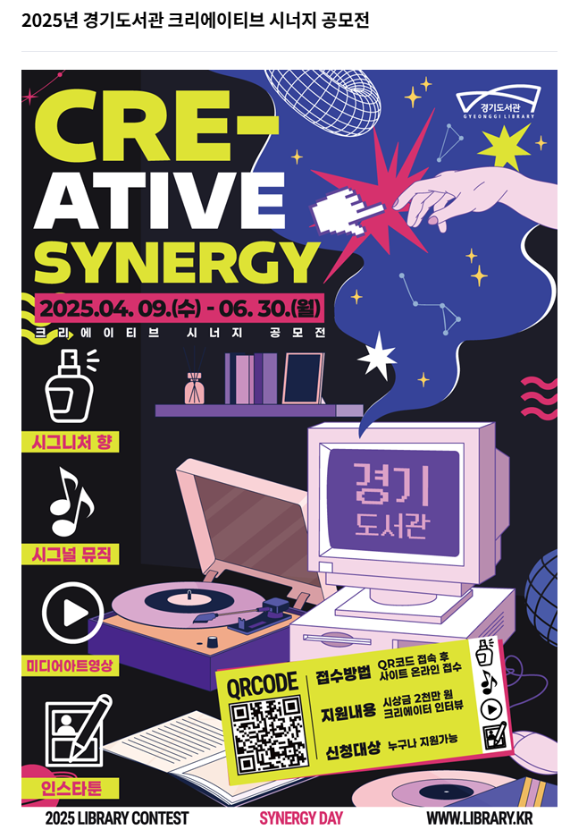 [인스타툰] 2025년 경기도서관 크리에이티브 시너지 공모전 당신의 작품이 경기도서관이 됩니다! ‘크리에...