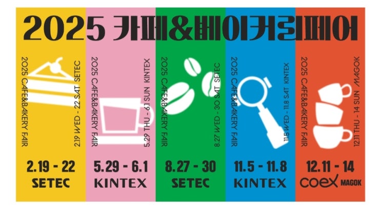 2025 카페&베이커리페어(cafe&bakery fair) / 5월(킨텍스),8월(세텍), 11월(킨텍스), 12월(코엑스)