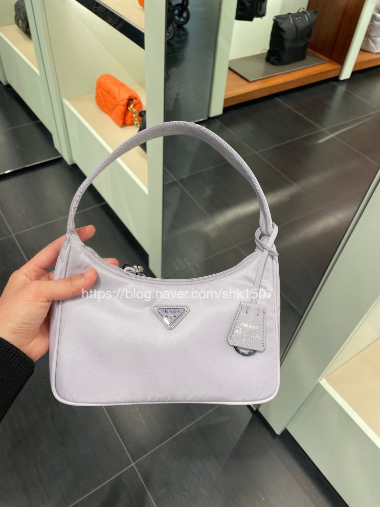 [판매완료] 프라다 1NE515 삼각로고 리나일론 테수토 호보백 라일락