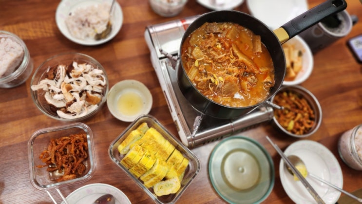 공방에 오랜 지인이 오셨다. 매일 컵밥만 먹는 우리들을 안타깝게 생각하셨는지 돼지갈비 김치찜을 직접 싸...