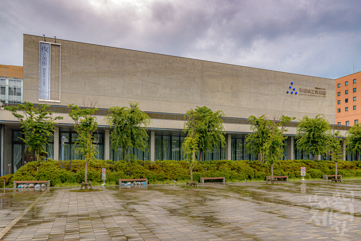 안도 다다오가 설계한 건축물, 노출콘크리트의 아름다움을 보여주는 아키타 현립 미술관.