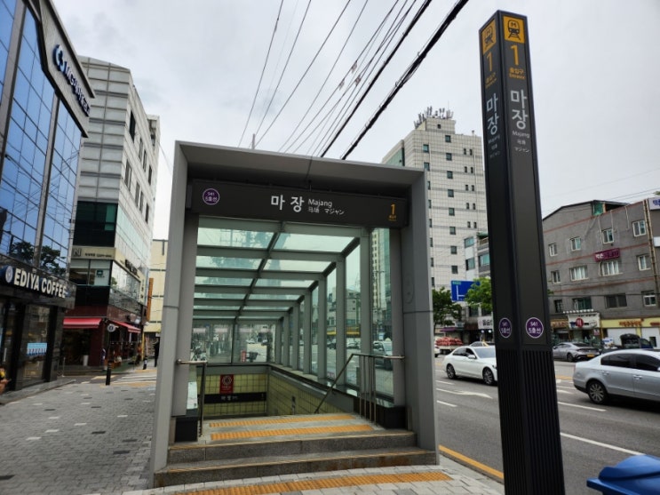 마장역으로 이동합니다. 5호선 마장역 1번 출구 타는 곳 게이트 방화 방면 역명판 바로 다음역이 2호선, 경...