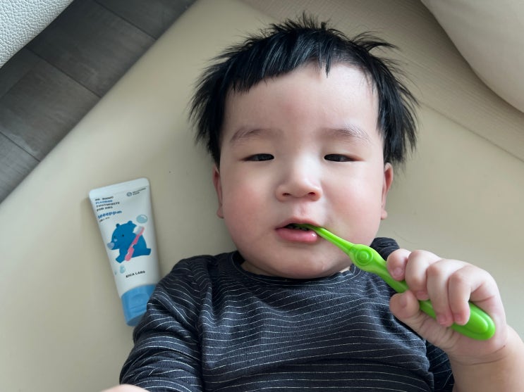 임신하고 베이비페어에 갔을 때 공짜로 받은 치약이 있었다. 아기 이가 나기 시작했고 소아과에서 “양치해...