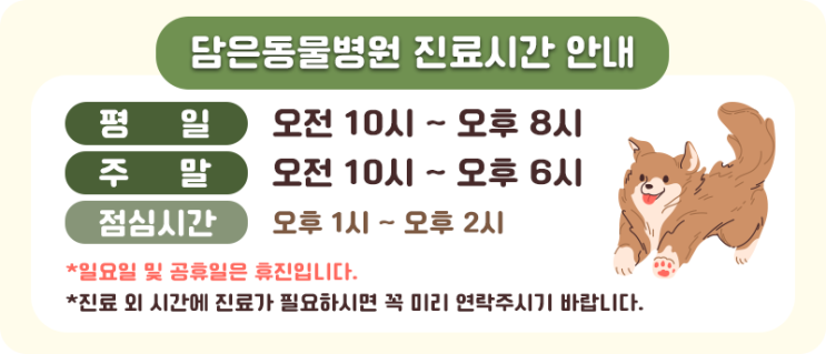 2025년 2월 담은동물병원 진료시간 안내입니다.