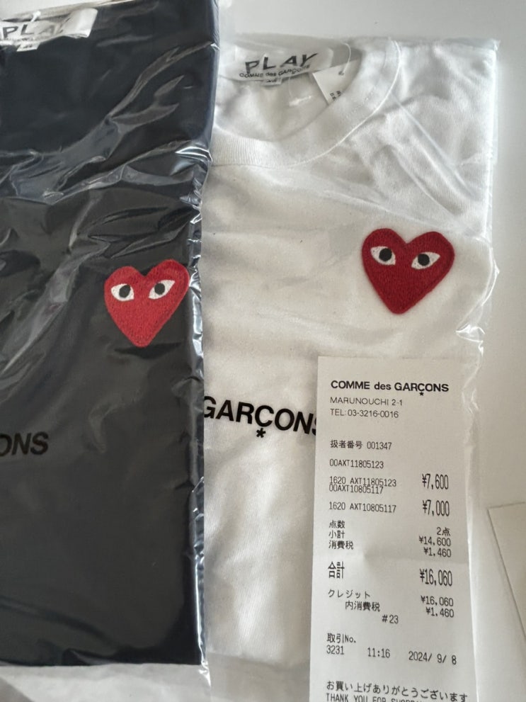 검정 반팔 7000엔, 흰색 긴팔 7600엔 각각 소비세 붙어서 16,060엔에 구매했어요. 검정은 XL 남편꺼고 평...