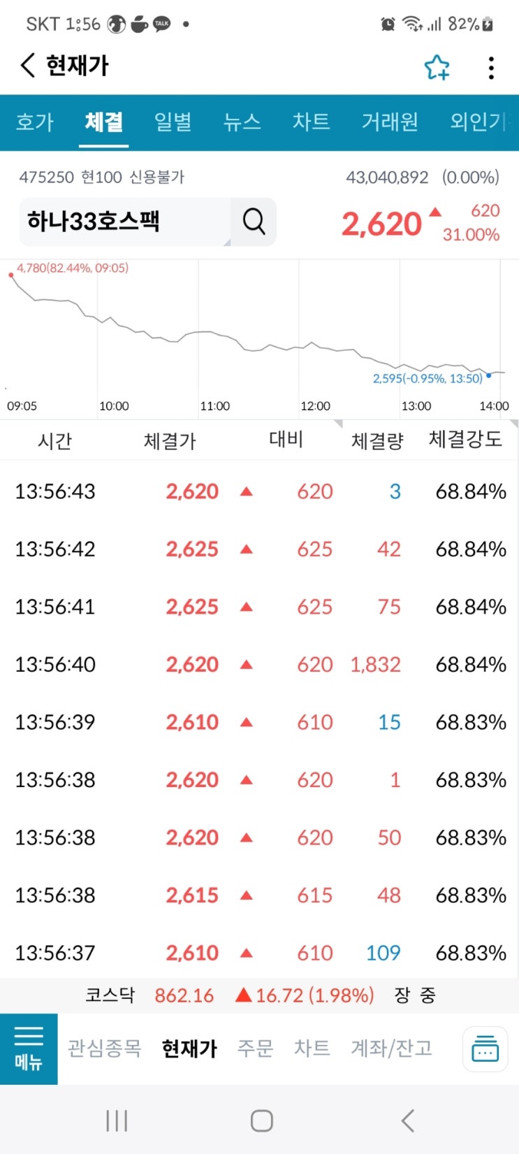 하나32호가 11시 이후 상승했었기에 33호는 다시 상승하는지 실험해보았다. 총 6주를 9시 30분까지 팔지않...
