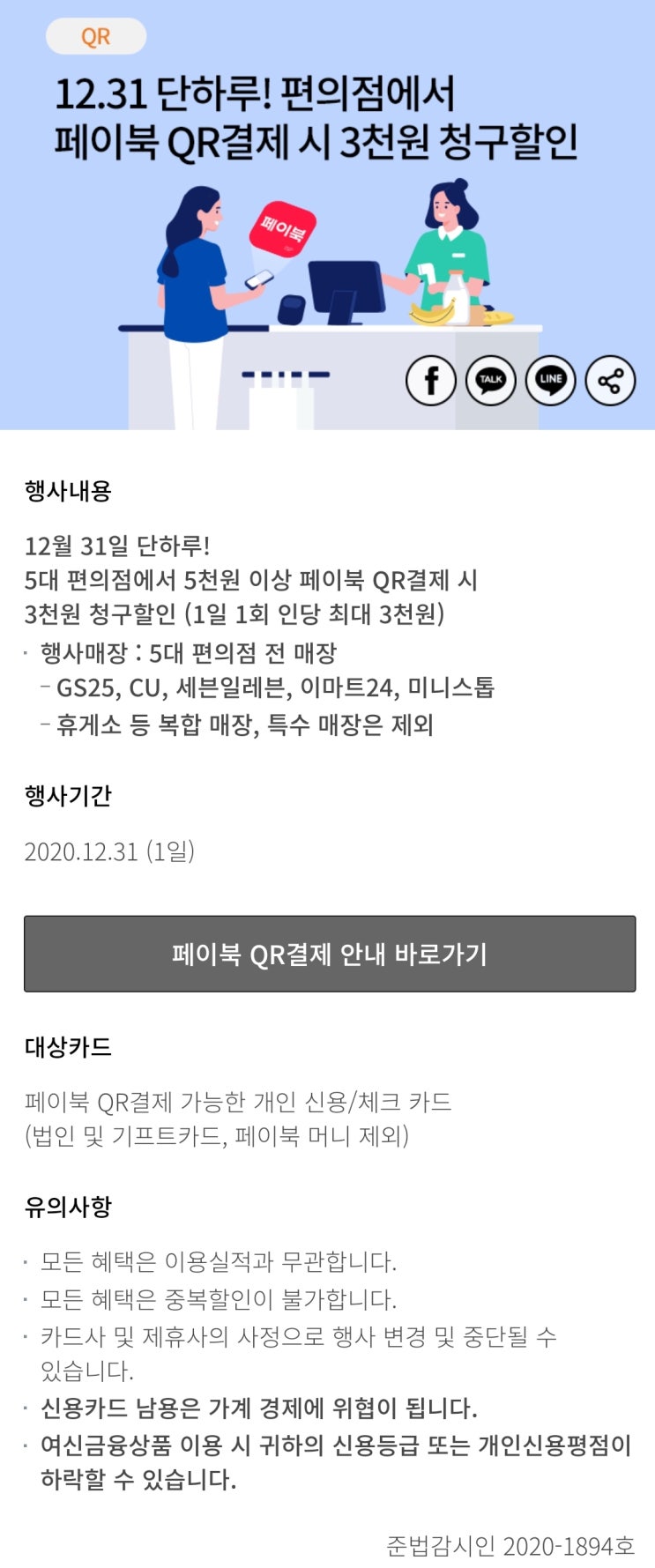 돈버는 이벤트(페이북 QR결제_단 하루 편의점 3천원 청구할인)