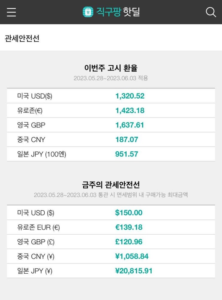 2023.05.28 ~ 2023.06.03 관세 안전선 & 관세청 주간 고시환율