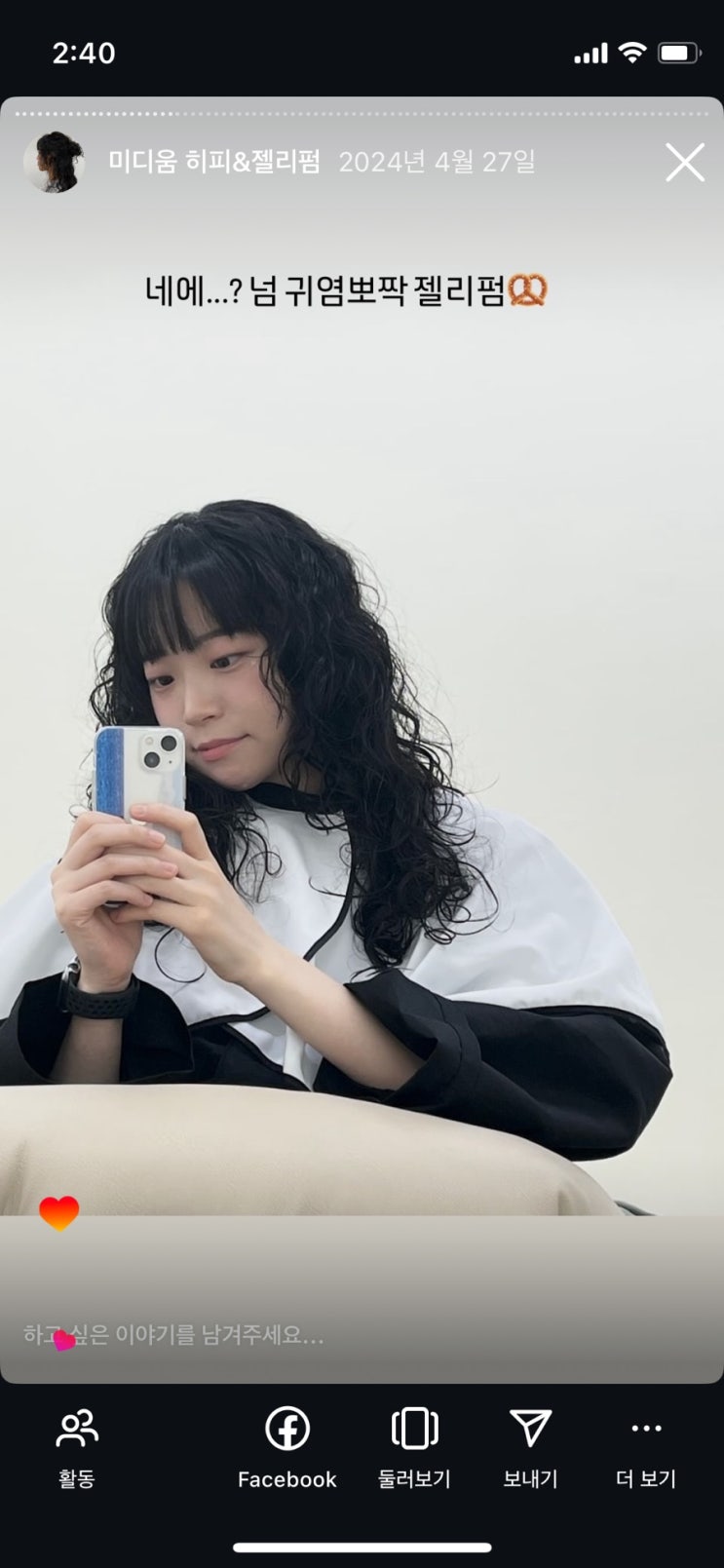 안녕하세요! 오늘은 얇은머리에서 히피펌 열펌을 하면 얼마나 유지되는지 사진으로 보여드립니다! 오늘 고...