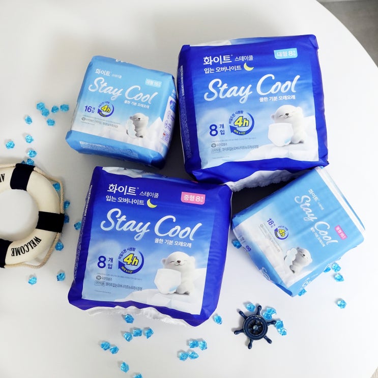 시원한 여름을 위한 화이트 스테이쿨 쿨링 생리대 입는오버나이트