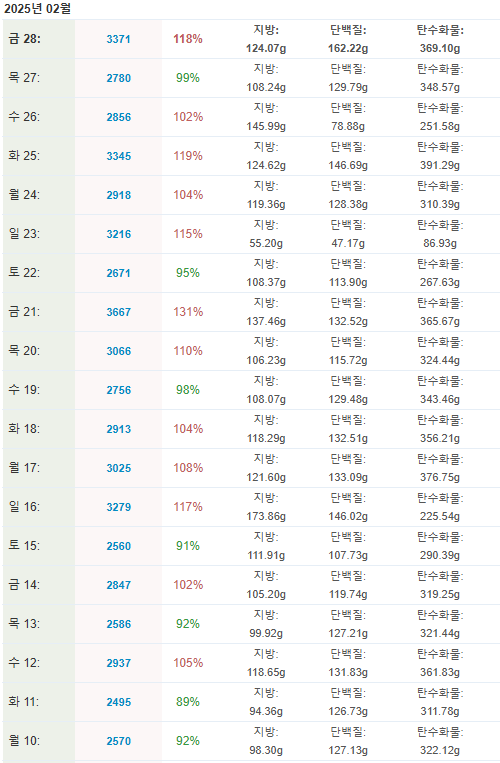 2025, 2월 운동, 식단 기록(~711일차)