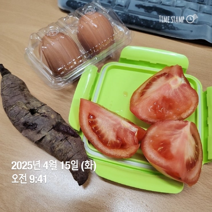 아침 - 계란2, 고구마1, 토마토1 점심 - 닭가슴살, 현미밥, 토마토1 간식 - 프레첼(?), 초코과자1, 견과류,...