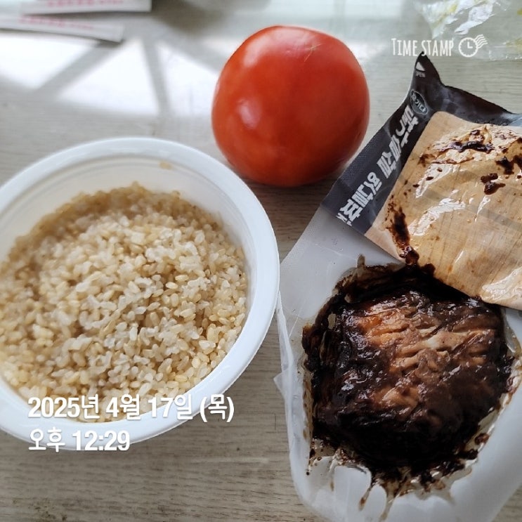 아침 - 계란1, 토마토1 점심 - 닭가슴살, 현미밥, 토마토1 간식 - 견과류 저녁 - 닭가슴살, 고구마1, 양상...