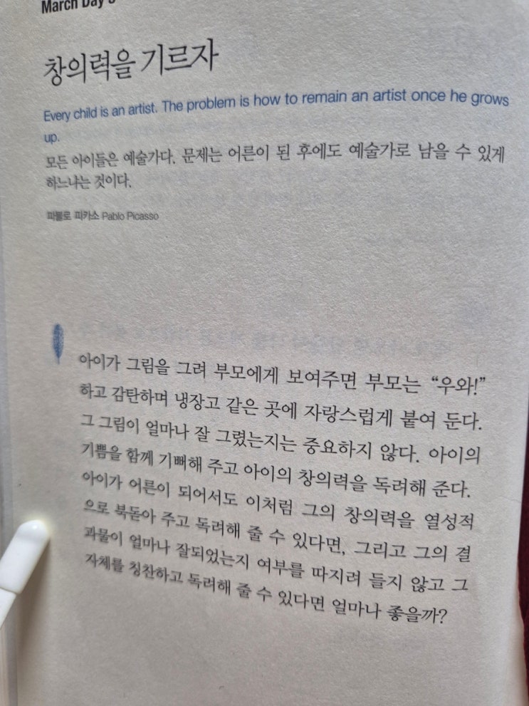 창의력을 기르자 Every child is an artist. The problem is how to remain an artist once he gows up. ...