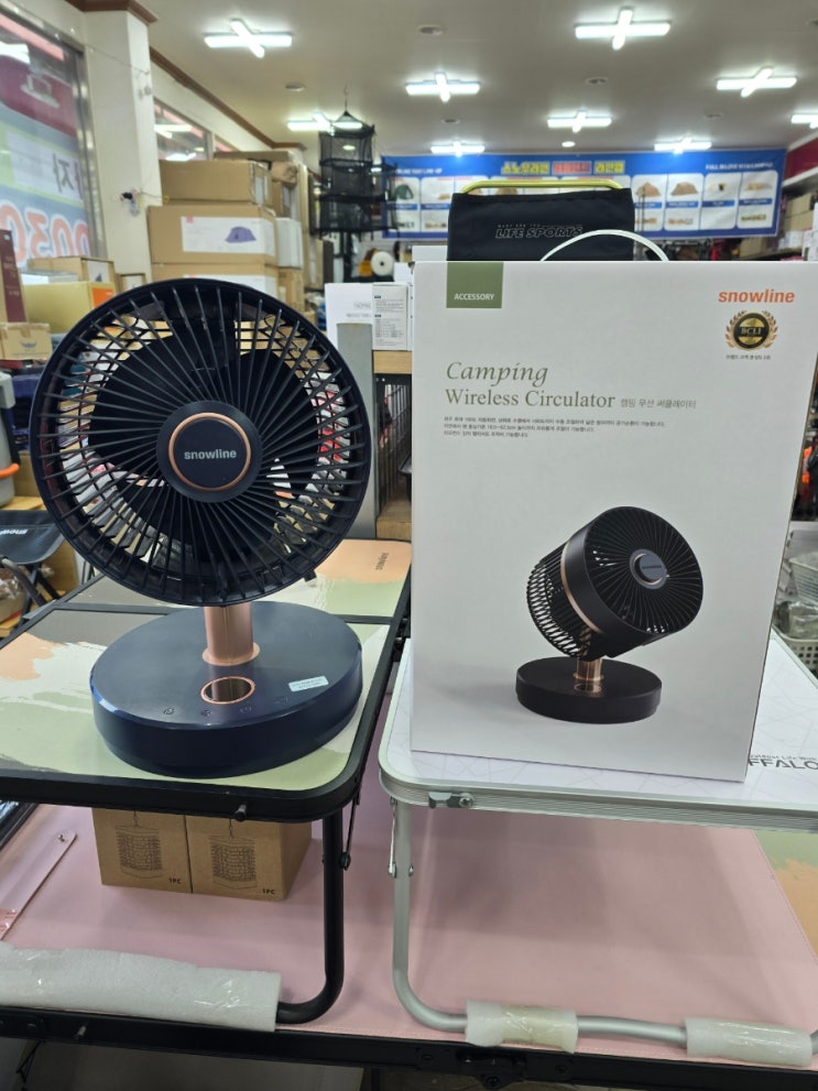 시원한 바람. 대용량 배터리. 자동 회전으로 공기 순환이 가능한 스노우라인 캠핑 무선 서큘레이터