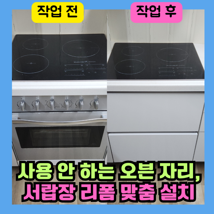 동탄 사용 안 하는 오븐 자리 철거 후, 2단 서랍장 맞춤 설치