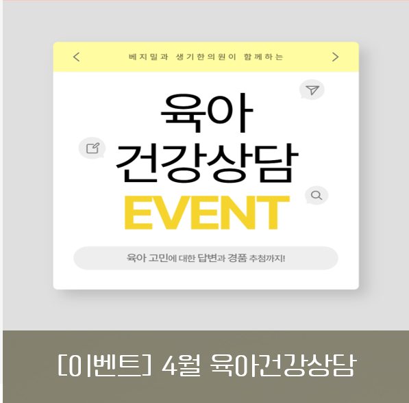 [이벤트] 우리 아이 육아 고민, 무엇이든 물어보세요! 4월 육아건강상담 이벤트 : 베지밀 with 생기한의원
