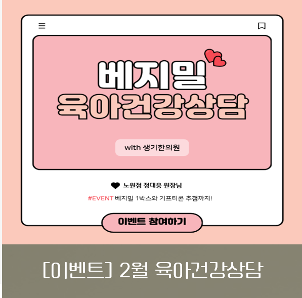 [이벤트] 우리 아이 육아 고민, 무엇이든 물어보세요! 3월 육아건강상담 이벤트 : 베지밀 with 생기한의원