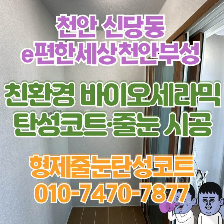 형제줄눈탄성코트입니다. 오늘은 e편한세상천안부성에 방문하여 노후된 벽면을 말끔하게 보수한 후 탄성코...