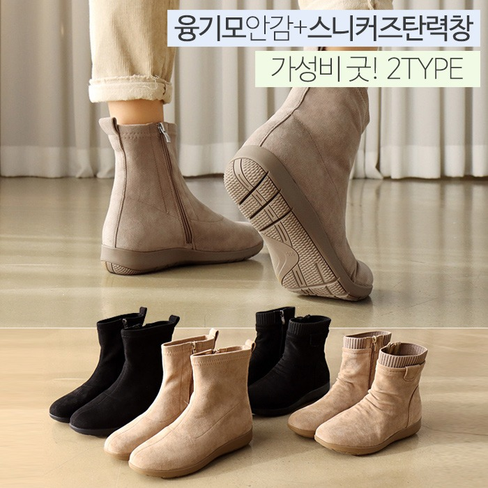 루퐁드 2TYPE 스웨이드 융안감 탄력스니커즈창 앵클부츠(4cm) 포근한 융기모안감에~폭신한 쿠션중창+스...