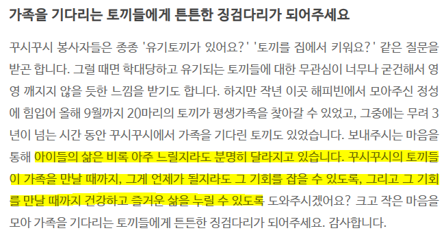 꾸시꾸시 봉사자 분이 작성하셨을텐데 글이 너무 슬펐다.. 기부 : 해피빈 (naver.com) 2023년 11월 기사 깡...