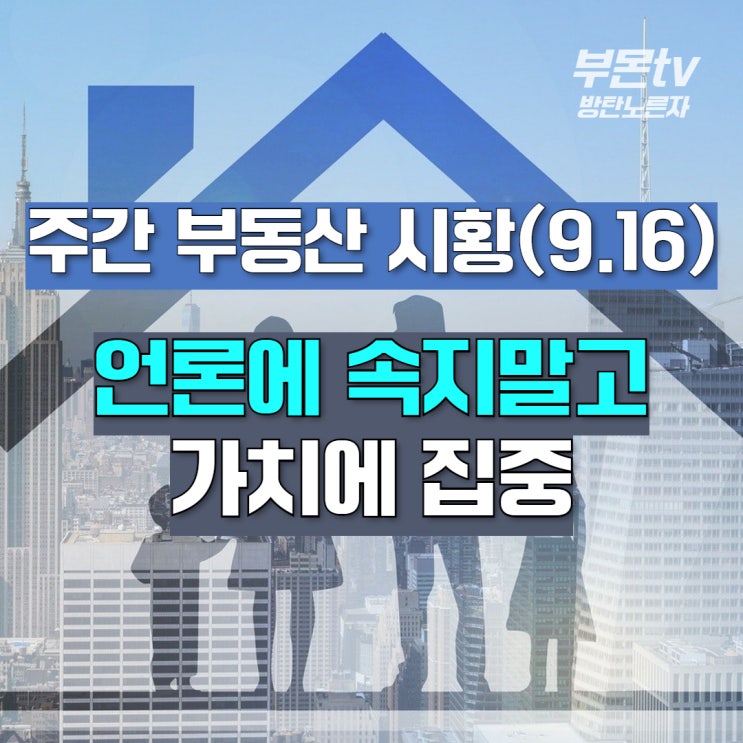 9월 16일, 주간 서울 인천 아파트 매매 전세 동향 - 언론에 속지말고 가치에 집중하라.