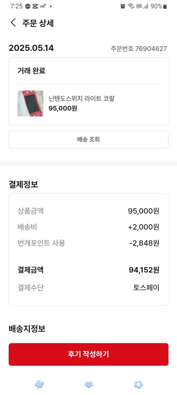 번개장터 닌텐도스위치라이트코랄색상 구매후기